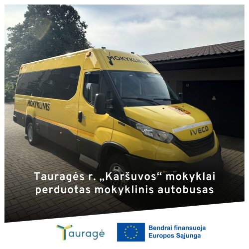Tauragės rajono savivaldybės administracija, įgyvendindama projektą „Negalią turintiems mokiniams ir kitiems mokiniams pavėžėti iki ir iš ugdymo įstaigos lengvai pritaikomų transporto priemonių įsigijimas Tauragės rajono savivaldybėje“, įsigijo ir perdavė Tauragės r. „Karšuvos“ mokyklai valdyti, naudoti ir disponuoti juo patikėjimo teise modernų, 100 proc. elektra varomą, 19+1 vietų M3 klasės mokyklinį autobusą IVECO 72C14E. Autobusas pritaikytas vežti asmenis su negalia ir kitus mokinius į ugdymo įstaigą ir iš jos.